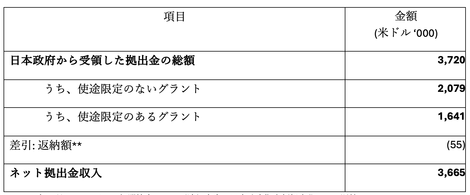 本アナウンスメントにより、日本政府から受領した拠出金の金額を以下のように訂正いたします。